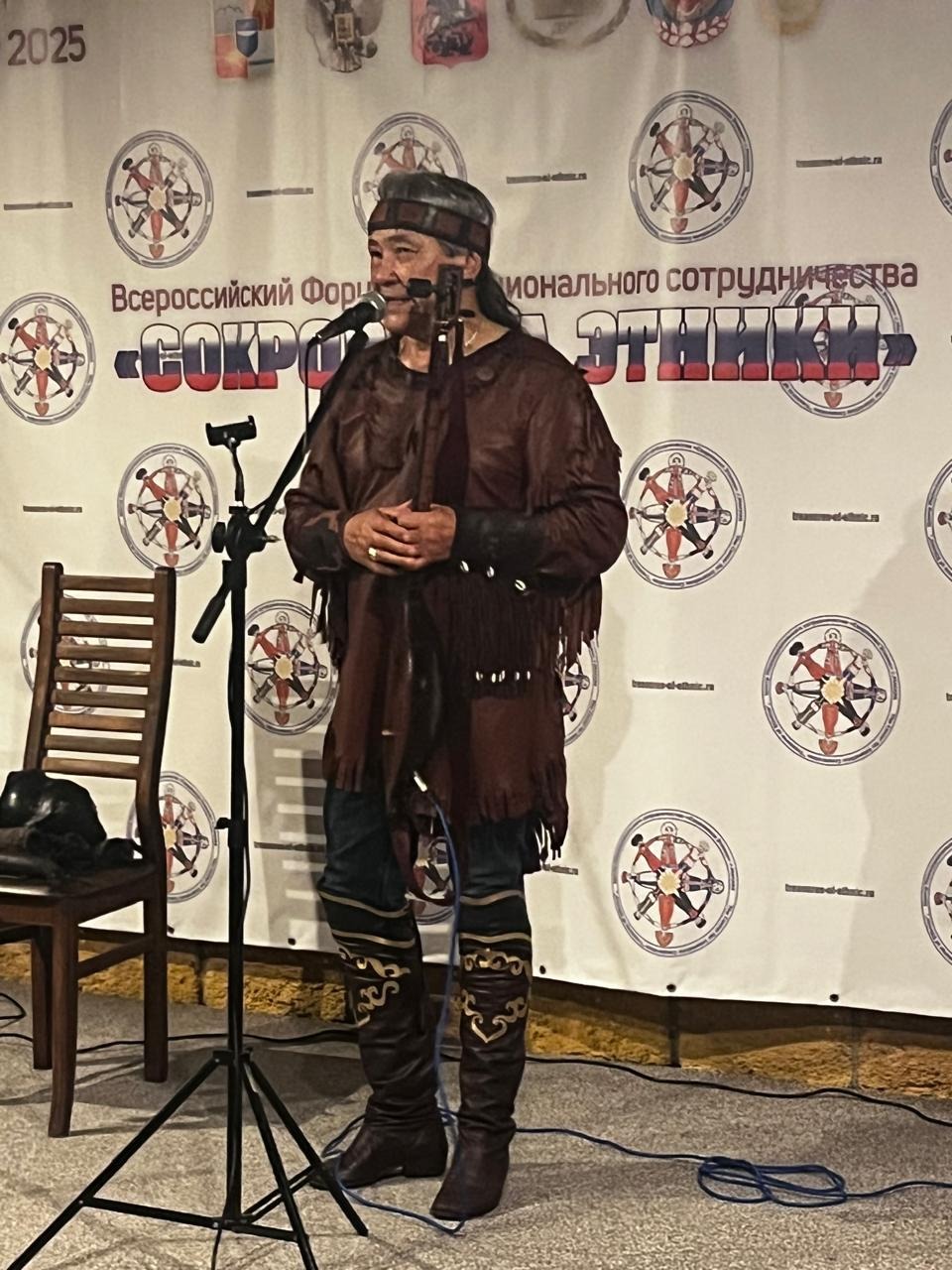 Первым выступил легендарный исполнитель горлового пения Болот Байрышев, заслуженный артист России. Его проникновенное исполнение традиционных песен алтайцев завораживало слушателей своим уникальным звучанием и глубокими вибрациями голоса. Горловое пение — древняя форма вокала, присущая многим северным народам, особенно известным своим выразительным стилем исполнения. Искусство Болота Байрышева передает душу Алтайского края, передаваясь сквозь века и сохраняя своё мировое значение и красоту.